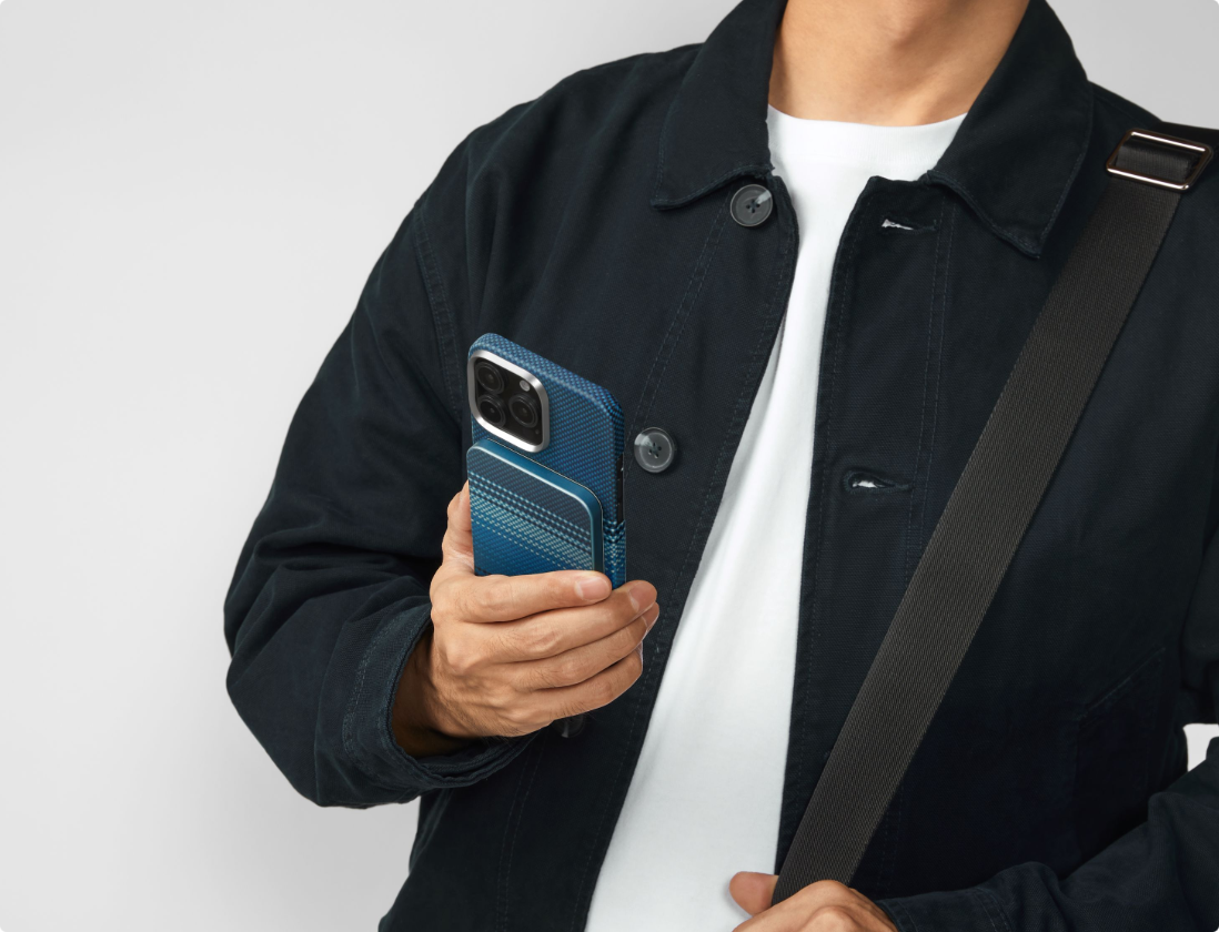 Die gewebte Aramidfaserstruktur und das raffinierte matte Metall-Finish bieten ein angenehmes haptisches Gefühl in deiner Hand. In Kombination mit einer Hülle derselben Farbe entsteht eine harmonische Ästhetik.