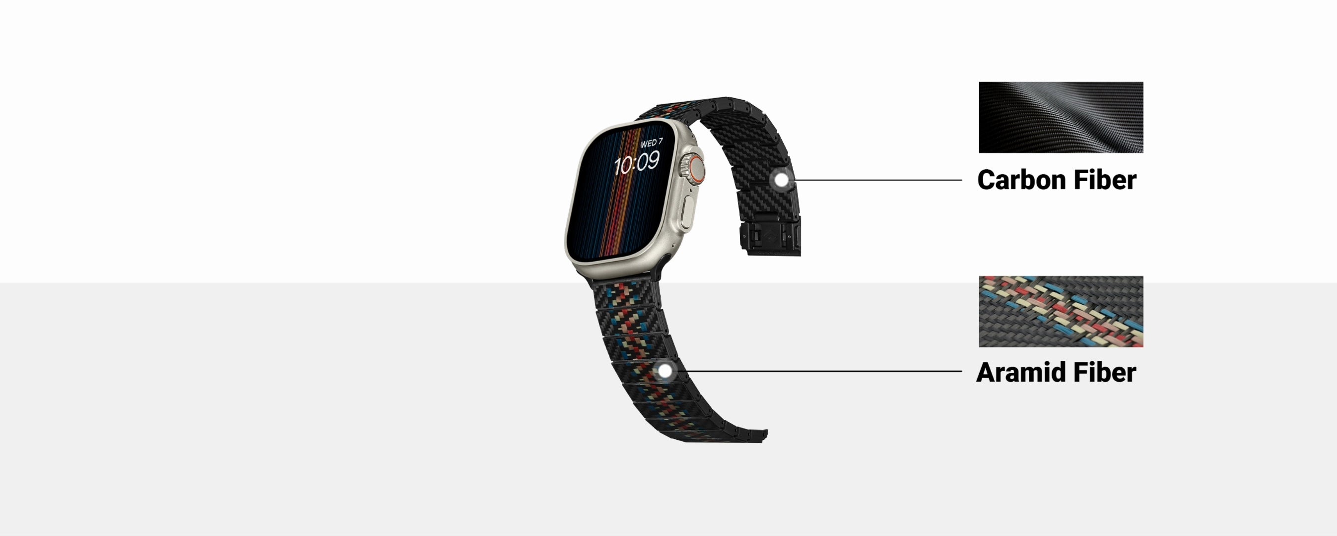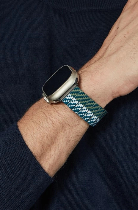 The Apple Watch band is crafted using carbon fiber and aramid fiber, which are blended seamlessly using ChromaCarbon™ technology to make the watch band unique and incredibly durable to last long.