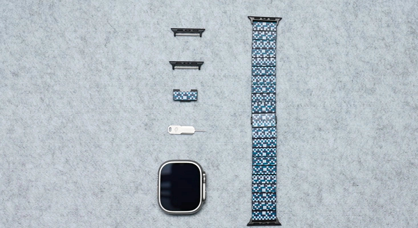 Das weltweit erste Armband mit Gliedern aus 100 % Kohlefaser, kompatibel mit allen Apple Watch Modellen, einschließlich Series 11-1, SE3/SE und Ultra 3/Ultra 2/Ultra.