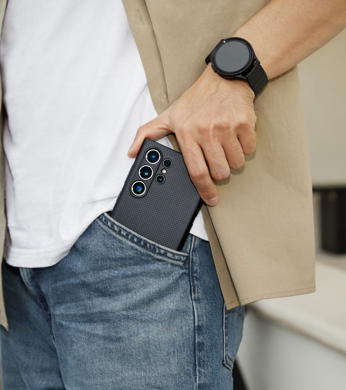 Eine MagSafe Schutzhülle mit Rundumschutz für Samsung Galaxy S25 Ultra und Galaxy S24 Ultra mit PinButton. Read More